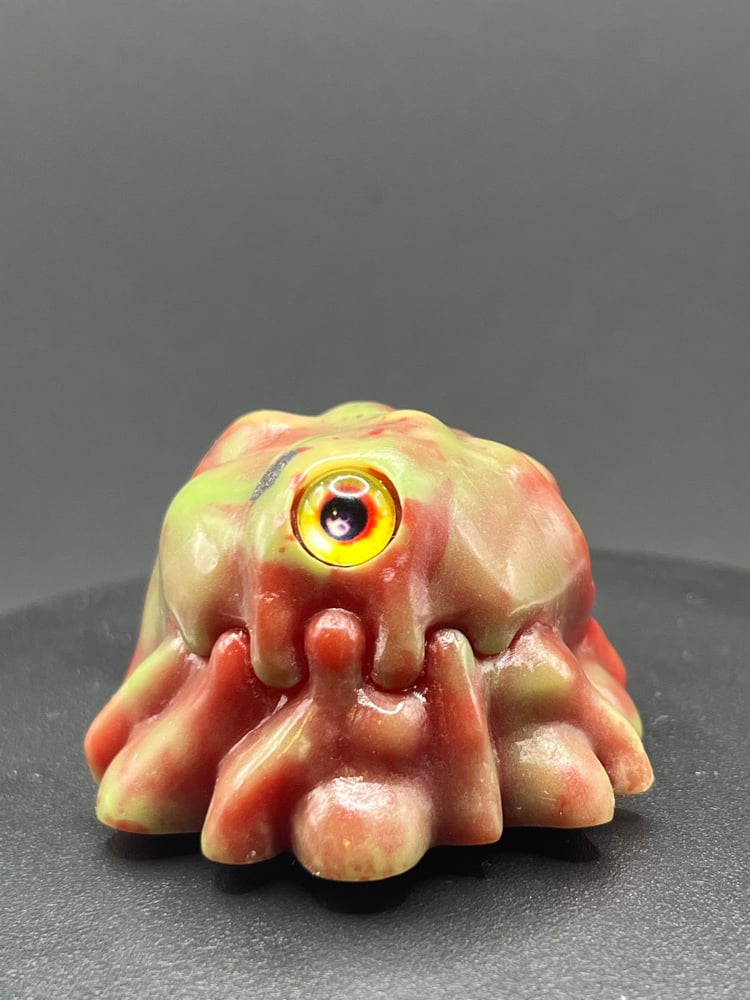 USA hand pulled Soft Vinyl with liquid gloss oversprays . Includes hand laid glass eye. Please note as these are a hand pulled item on silicone molds some irregularity in color and artifacts might be present in final Vinyl.